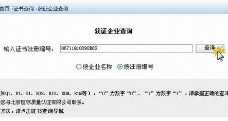 4、將完整的“證書編號”或“企業(yè)名稱”輸入信息欄,點擊“查詢”;